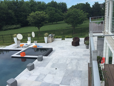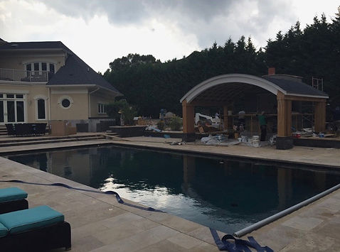 We worked on anything that is stone related within the photos. For example, we worked on the stone inside and around the pool, the outdoor kitchen, accents, and much more. Photos from this project can be found below.